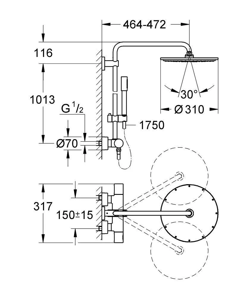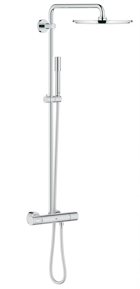Данная душевая система комплектуется верхним душем увеличенного диаметра на кронштейне, вращающемся в пределах 180°: благодаря этому она способна адаптироваться к Вашим потребностям настолько, насколько этого можно ожидать от душевого оборудования класса «люкс». Равномерное распределение воды через все форсунки делает ее прикосновение к Вашей коже мягким и успокаивающим и придает душевой струе неповторимые расслабляющие свойства. Мощный ручной душ помещен в изящный тонкий корпус, а его положение по высоте можно свободно регулировать в пределах всей штанги за счет скользящего держателя. Форсунки верхнего и ручного душей изготовлены из силикона, устойчивого к известковым отложениям, а корпусы снабжены первоклассным легкоочищаемым хромированным покрытием. В конструкции термостата применяется технология GROHE CoolTouch, благодаря которой предотвращается опасный нагрев внешних поверхностей и обеспечивается защита всей семьи от ожогов.