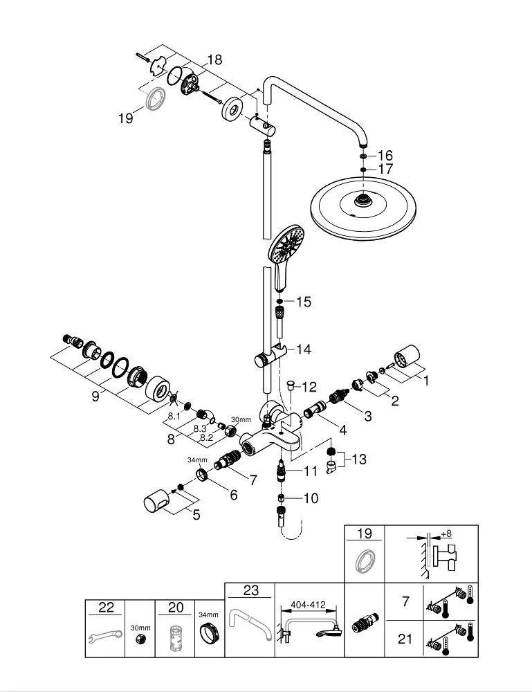 кронштейн 450 мм - GROHE QuickFix (регулируемое расстояние между