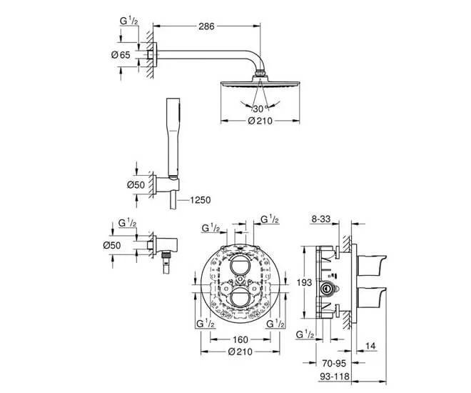 Душевая система GROHE Rainshower Cosmopolitan с душевым гарнитуром и верхним душем Rainshower Cosmop 34631000