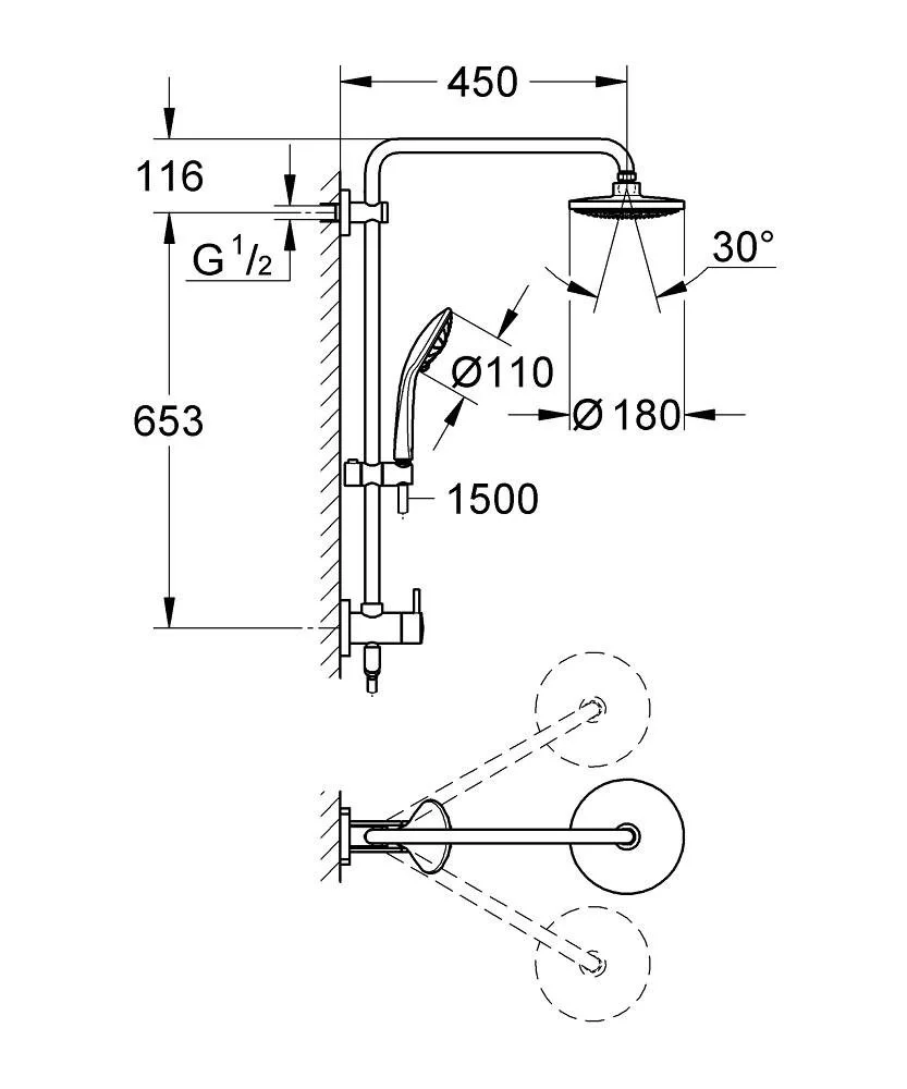 горизонтальный поворотный душевой