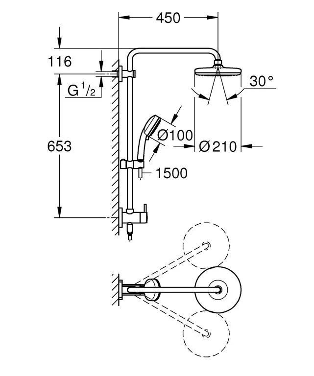 Душевая система GROHE Tempesta 210 Retro-fit с переключателем (без смесителя), хром (26190001)