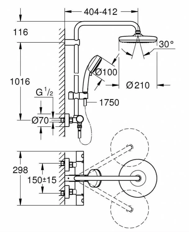 Душевая система GROHE Tempesta Cosmopolitan 210 с термостатическим смесителем, хром (120234)