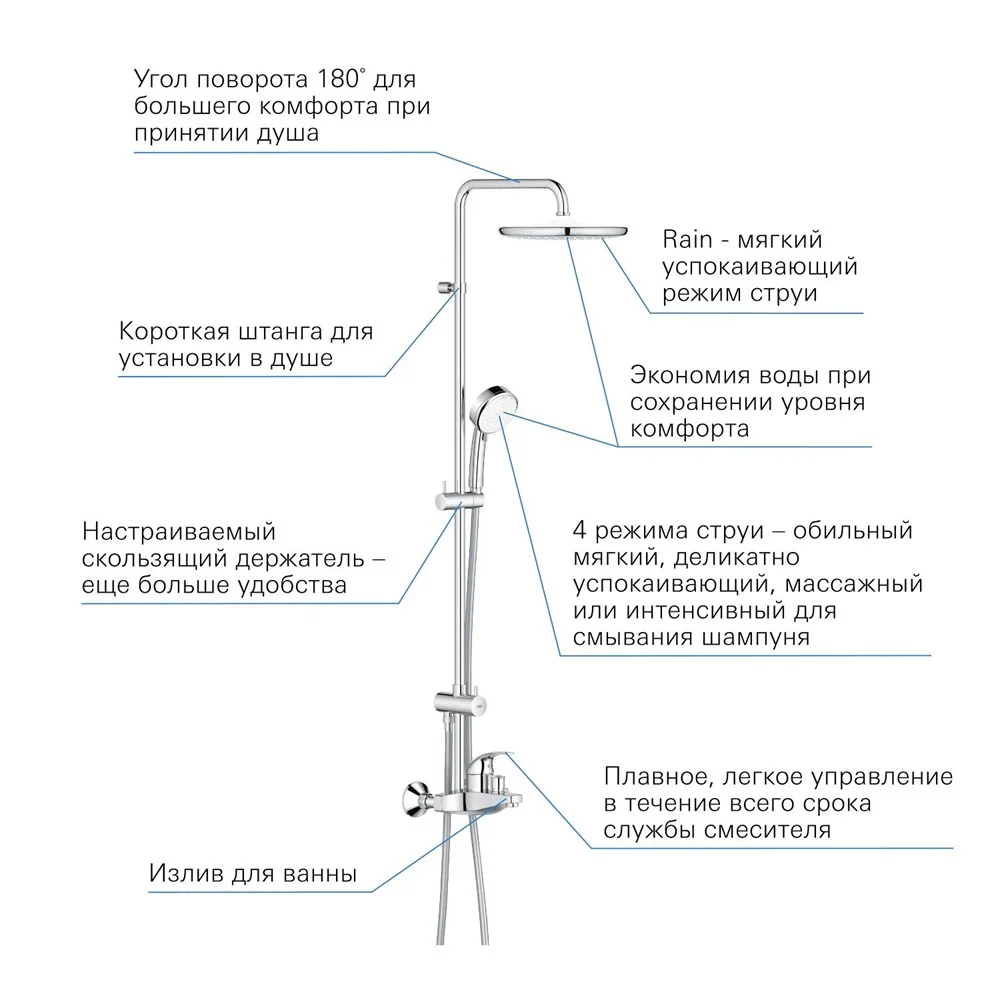 Купить Душевые системы производства GROHE, код товара: 196187 можно выгодно в Сантемо.ру: