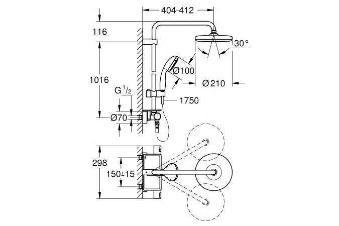 - GROHE SafeStop Plus опционно ограничитель температуры на 43°C, включен