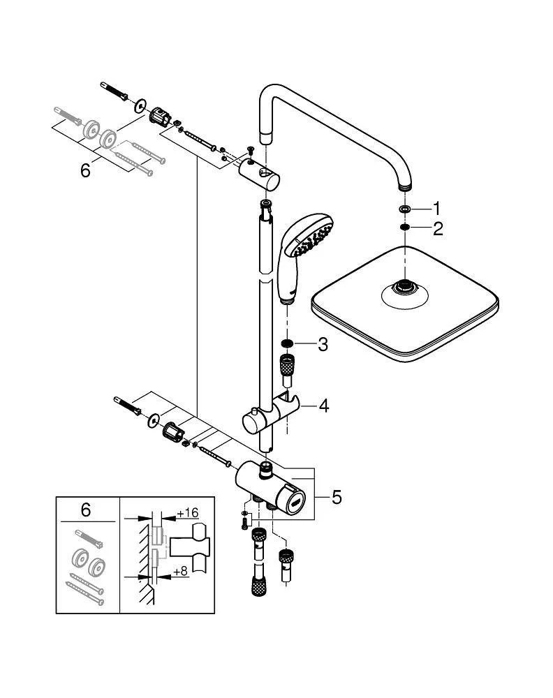 - переключатель на 3 положения: верхний душ, ручной душ, верхний душ с Eco-режимом