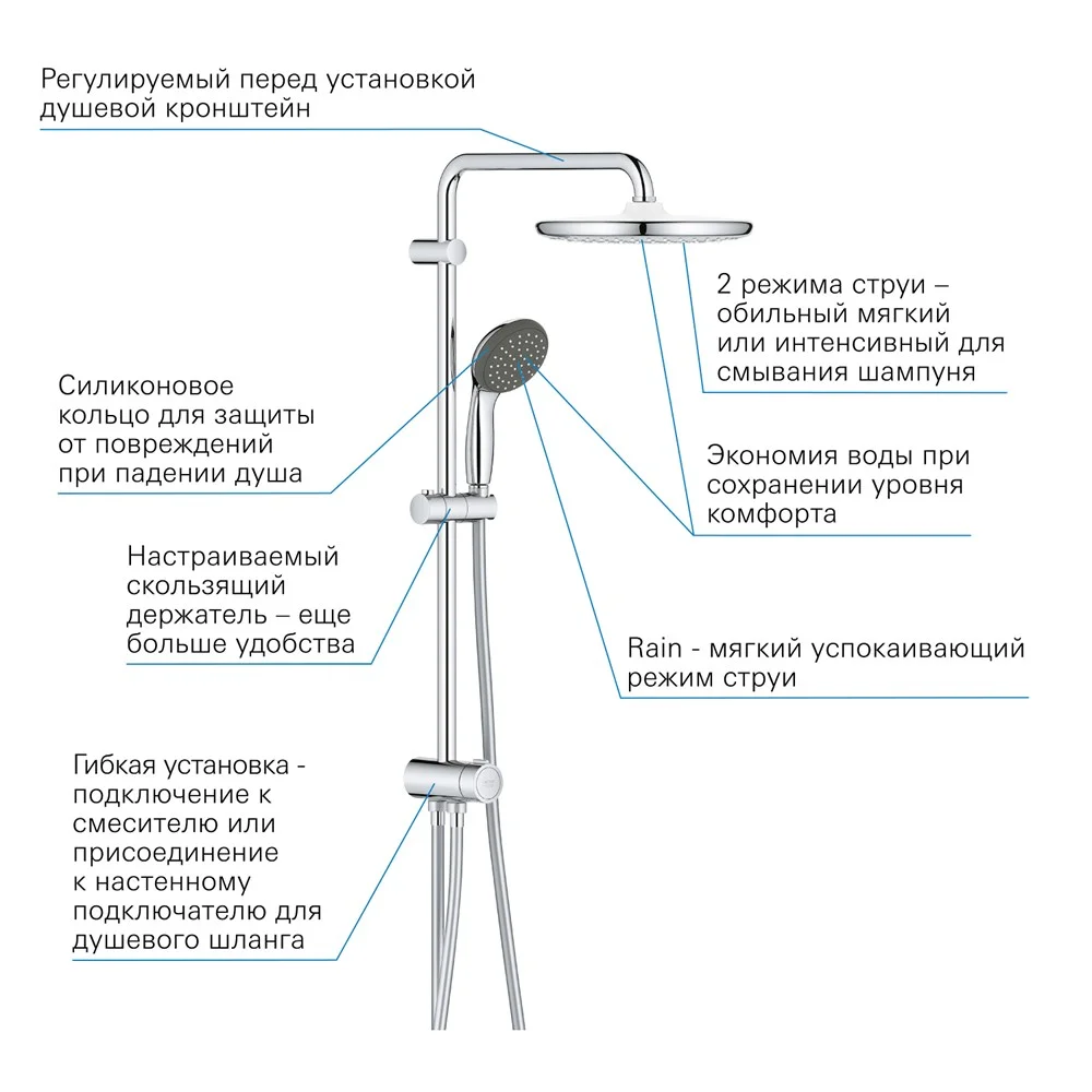 Купить Душевые системы производства GROHE (Германия), коллекция Vitalio Start System, код товара: 263401 можно выгодно в Сантемо.ру: