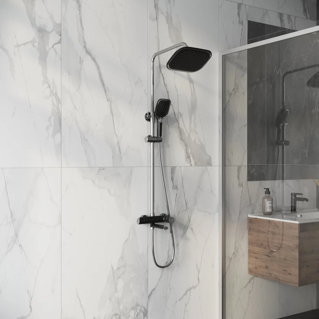 крепления, эксцентрики, душевой шланг, душевая лейка, аэратор, вентиль, держатель для душа, переключатель потоков