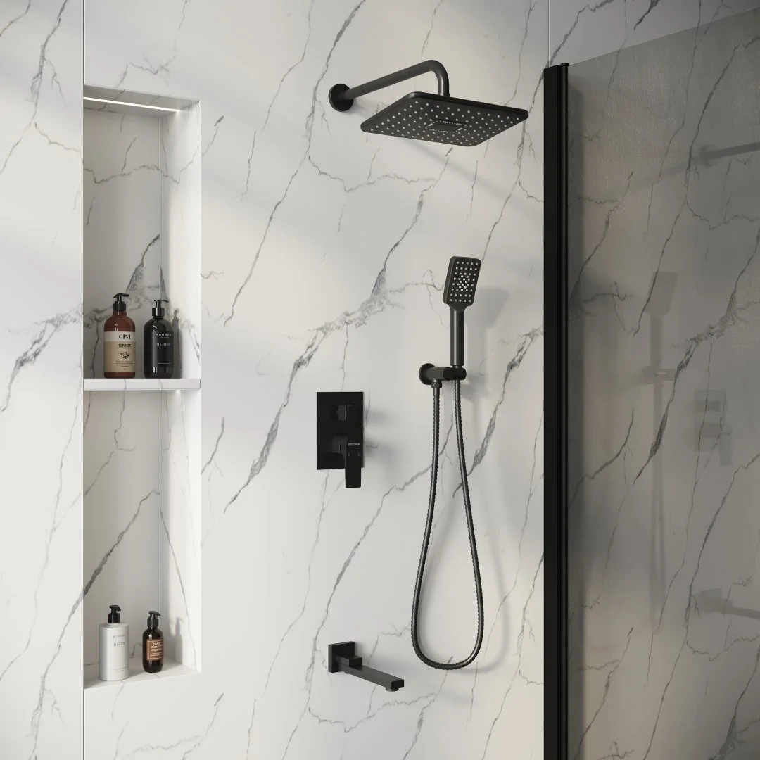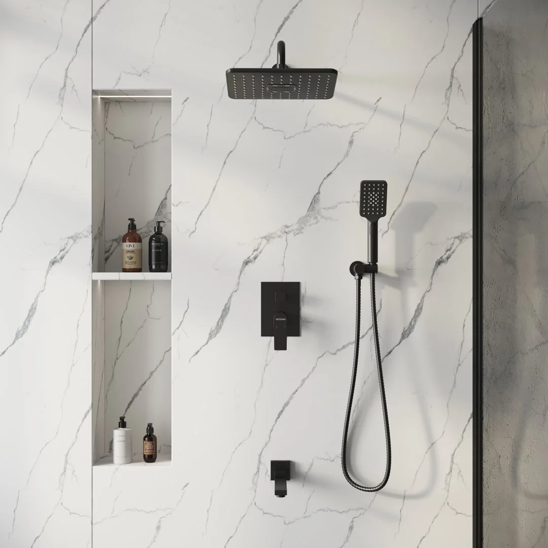 крепления, эксцентрики, настенный держатель, душевой шланг, душевая лейка, аэратор, вентиль, переключатель потоков