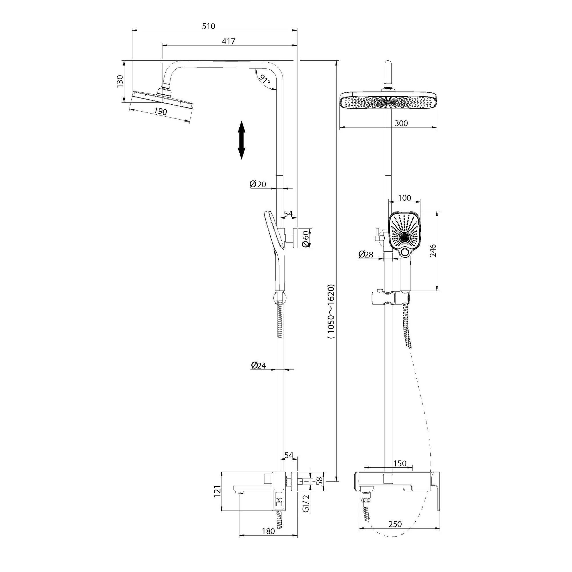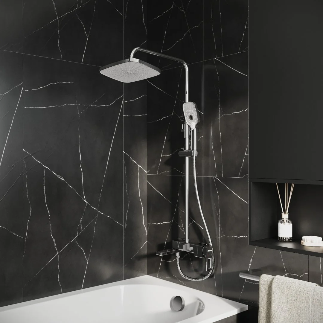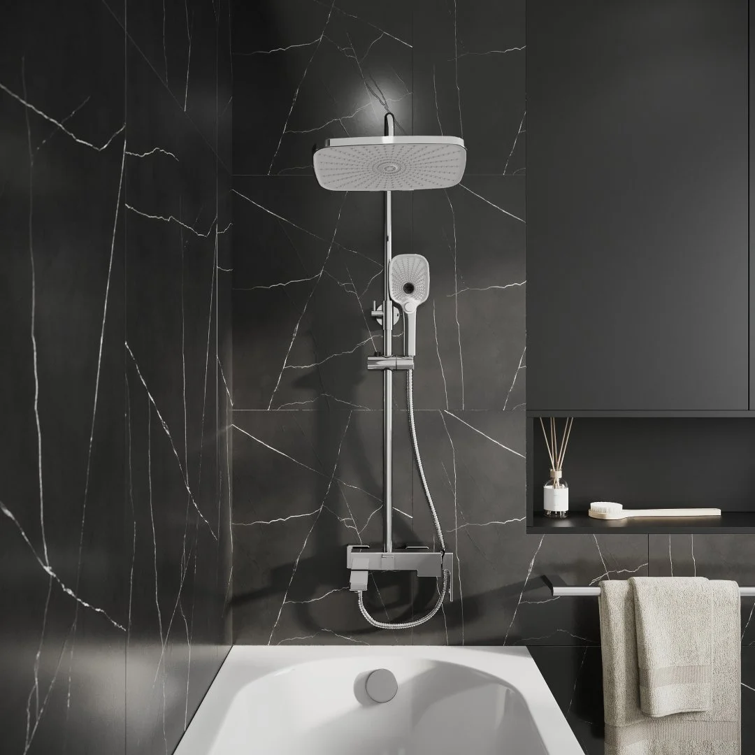 крепления, эксцентрики, душевой шланг, душевая лейка, аэратор, вентиль, держатель для душа, переключатель потоков