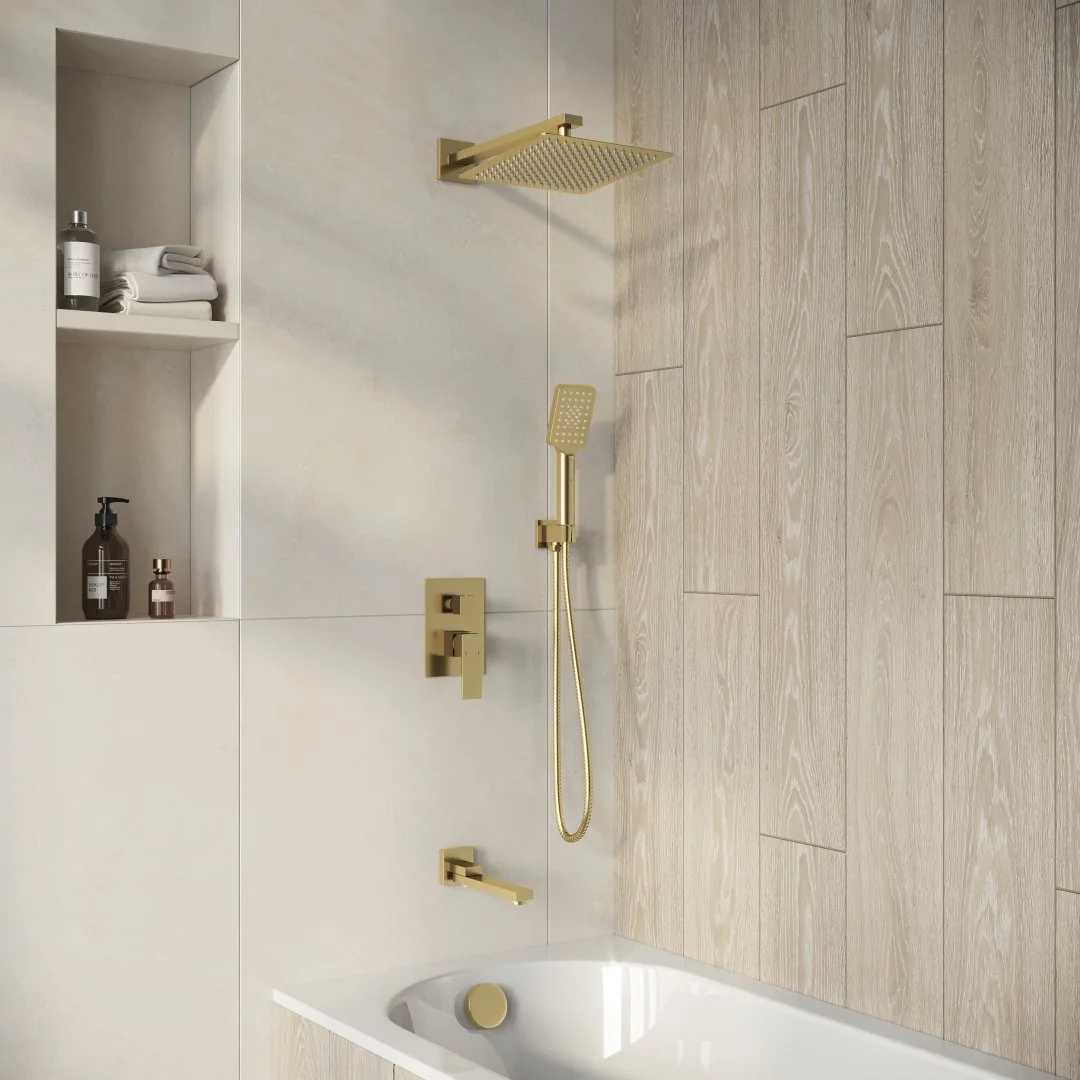 крепления, эксцентрики, настенный держатель, душевой шланг, душевая лейка, аэратор, вентиль, переключатель потоков