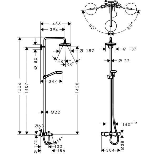 • регулируемый угол верхнего душа