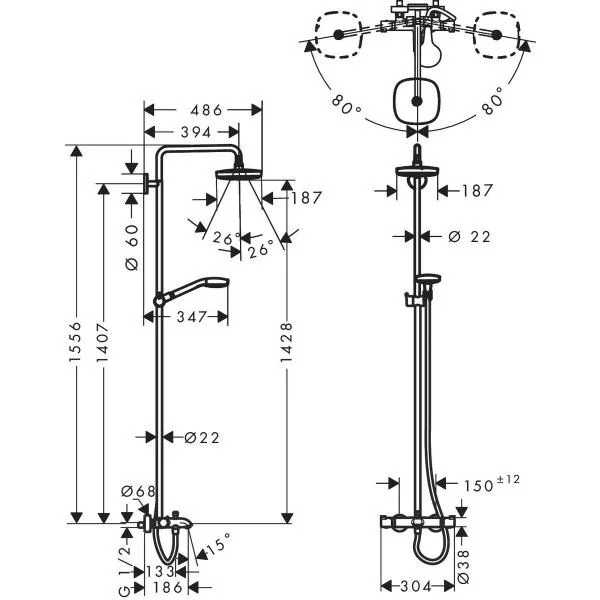 • размер душевого диска: 180 мм x 180 мм