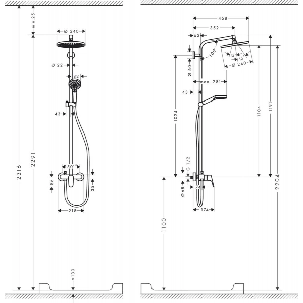 Душевая система hansgrohe Crometta S 240 1jet Showerpipe EcoSmart со смесителем 27269000