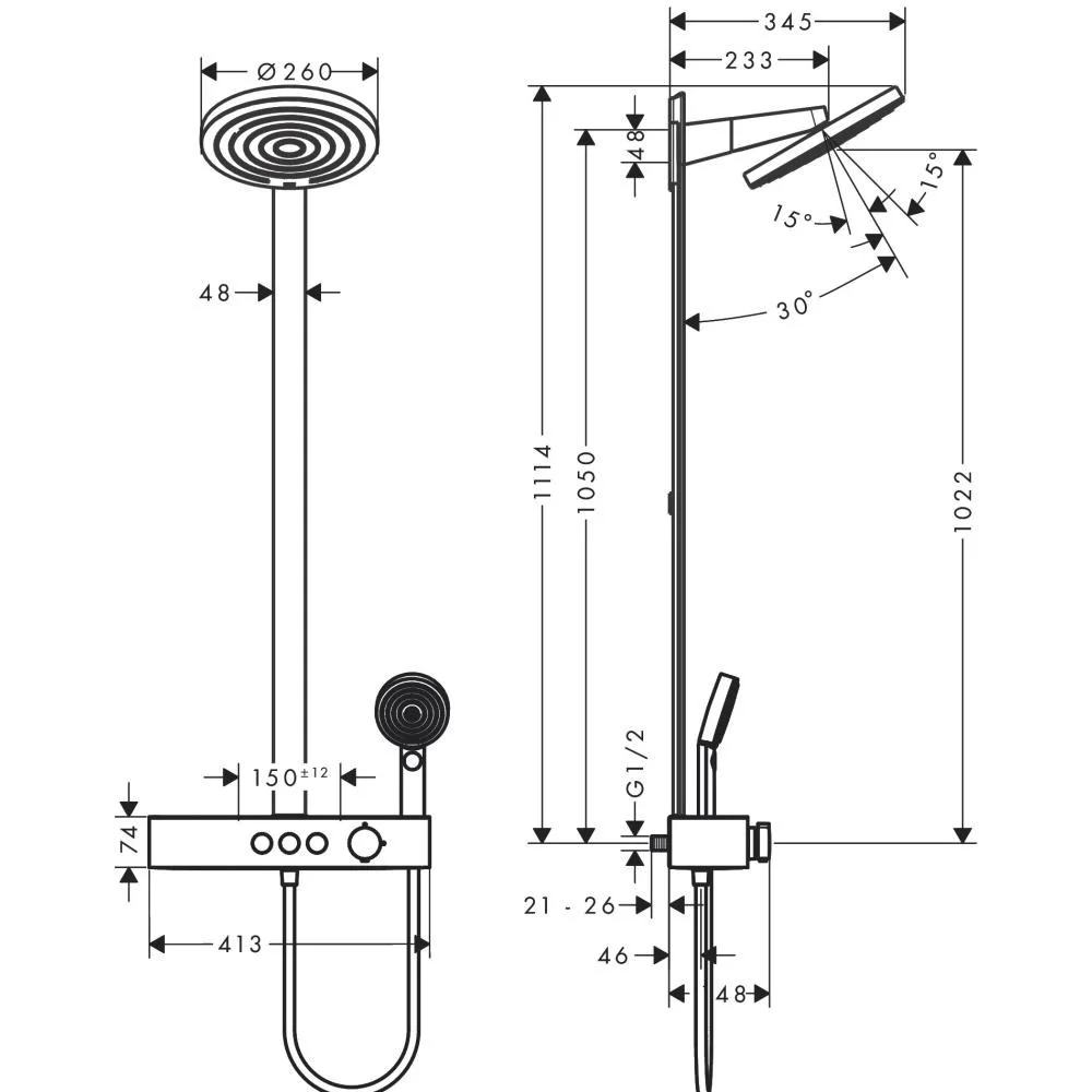 Купить Душевые системы производства Hansgrohe (Германия), коллекция Pulsify, код товара: 264449 можно выгодно в Сантемо.ру: