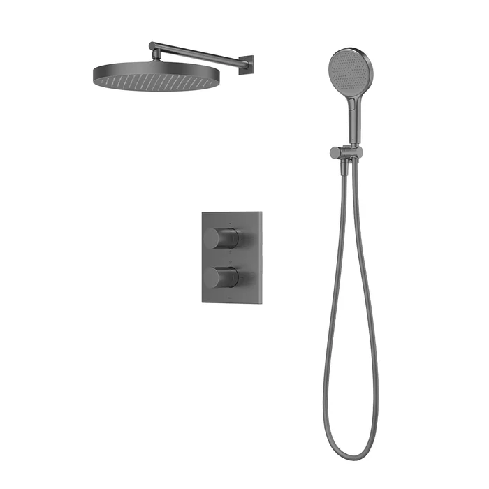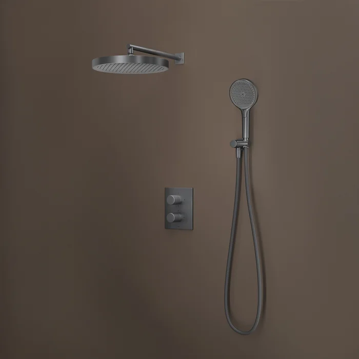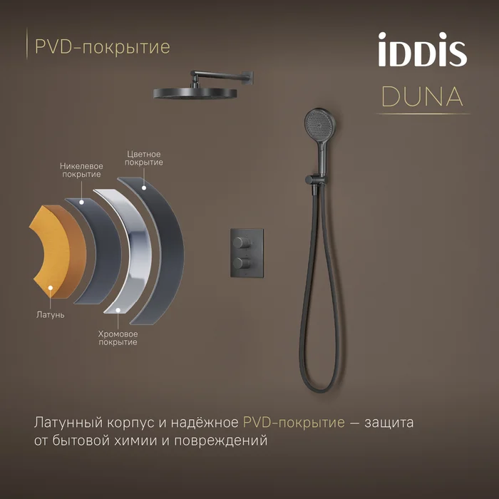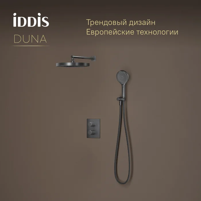 Встраиваемая душевая система с термостатом, тропическим и ручным душем Duna – воплощение актуальных трендов в дизайне смесителей в безупречном исполнении: фрезеровка, модные цвета и фактуры.