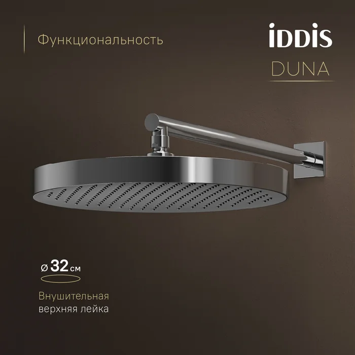 Продуманная функциональность: внушительная верхняя лейка Ø32 см обеспечит всеобъемлющий поток, ручная лейка с 3 режимами. Гибкий и надежный силиконовый шланг 1,5 м.