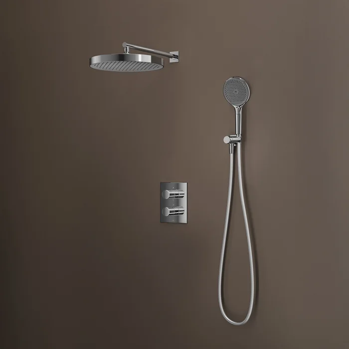 Встраиваемая душевая система с термостатом, тропическим и ручным душем Duna – воплощение актуальных трендов в дизайне смесителей в безупречном исполнении: фрезеровка, модные цвета и фактуры.