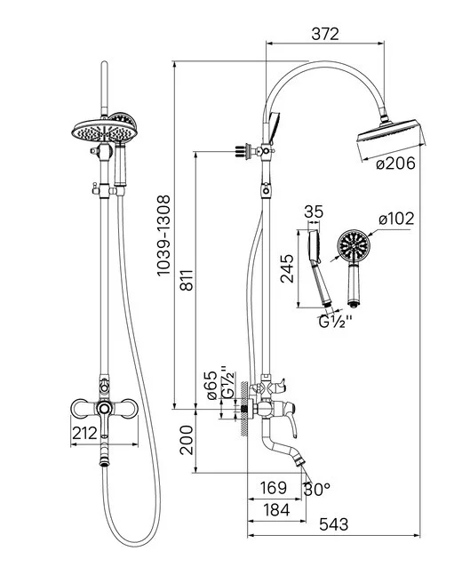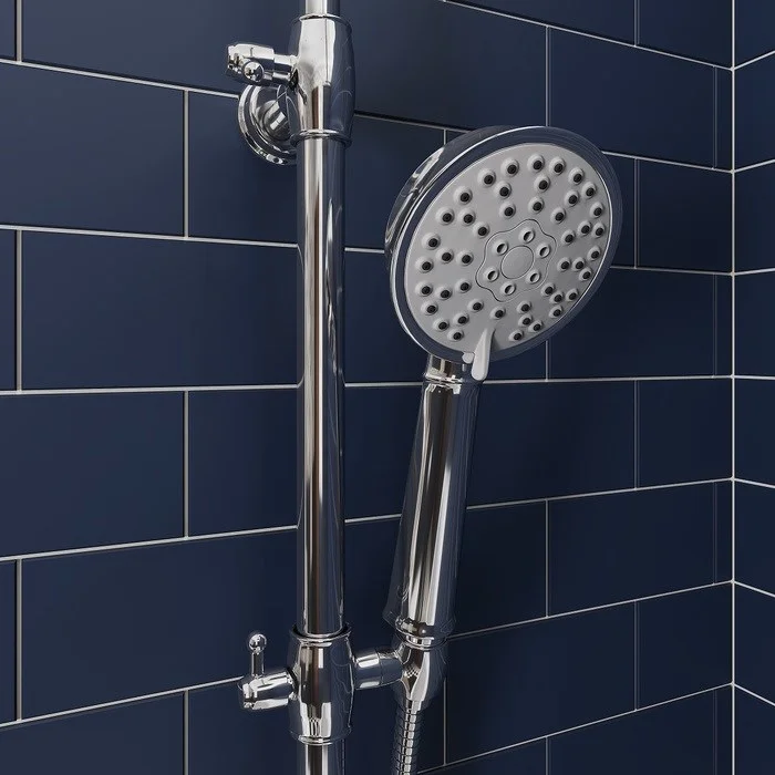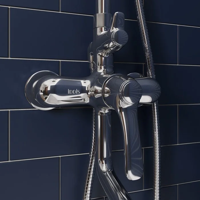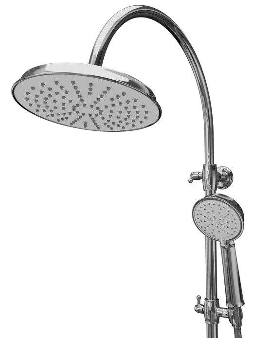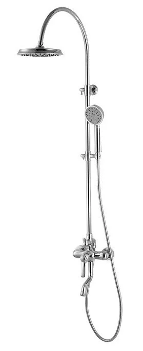 Смеситель для ванны с верхним душем, однозахватный, латунь, цвет - хром, керамический картридж Softap 35 мм, силиконовый аэратор Neoperl; верхняя лейка - 1 режим, диаметр 205мм, ABS-пластик; ручная лейка - 3 режима, диаметр 100мм, ABS-пластик; держатель для ручной лейки - ABS-пластик; 3-х режимный керамический дивертор; шланг из ПВХ в оплетке из нержавеющей стали - 1,5 м; штанга для душа - нержавеющая сталь с возможностью регулировки по высоте. Упаковка: кортонная коробка.
