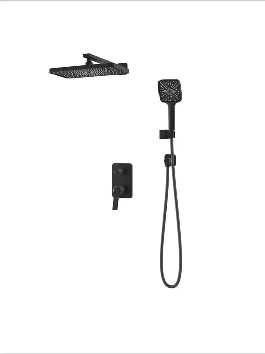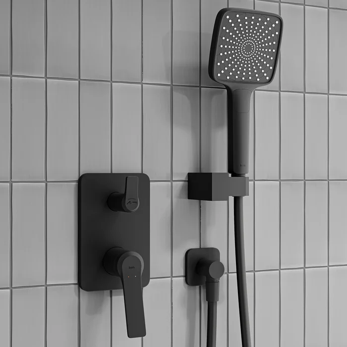 Встраиваемая душевая система Parker в черном матовом цвете – практичная и стильная, ее дизайн сочетает в себе трендовый минимализм форм и четкие грани. Готовый набор включает все необходимое для создания уютного и функционального пространства: смеситель, верхняя лейка с кронштейном для тропического душа, большая ручная лейка с 3 режимами, душевой шланг 1,5 м и выход для подключения шланга с держателем для лейки.