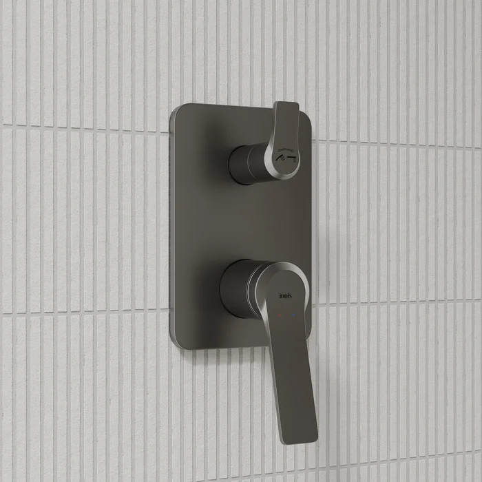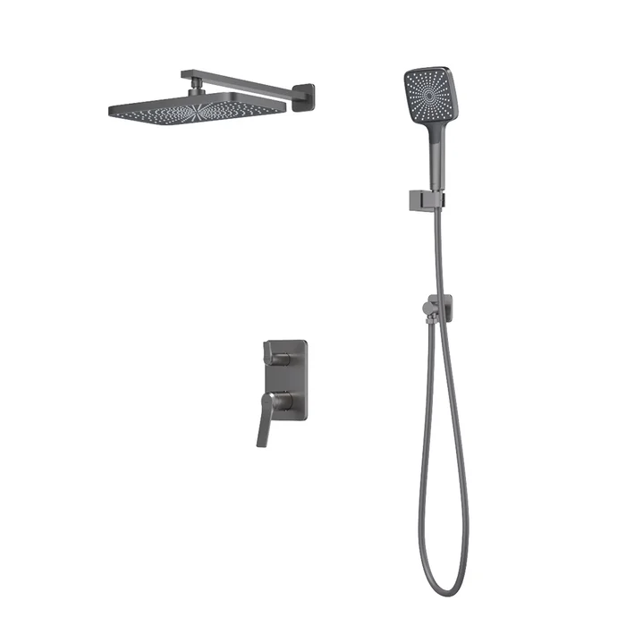 Встраиваемая система Parker в матовом графите - практичная и стильная, ее дизайн сочетает в себе трендовый минимализм форм и четкие грани.Готовый набор включает все необходимое для создания уютного и функционального пространства: смеситель, верхняя лейка с кронштейном для тропического душа, большая ручная лейка с 3 режимами, душевой шланг 1,5 м и выход для подключения шланга с держателем для лейки.