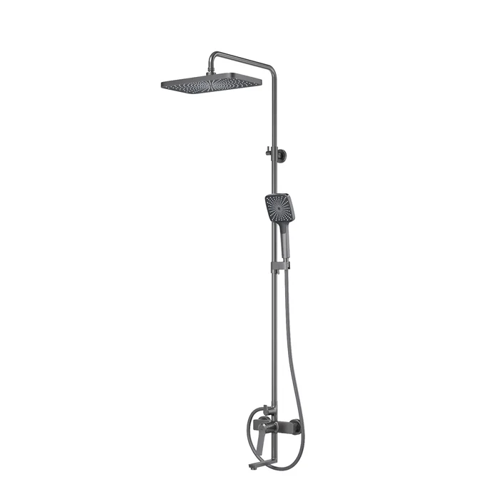 Душевая система Parker в матовом графитовом цвете с тропическим душем – практичная и стильная, ее дизайн сочетает в себе трендовый минимализм форм и четкие грани. Ручка изящно смотрит вверх под углом, освобождая под собой место для более удобного захвата. Необычный рисунок из форсунок на лейках в виде паутинки превращает душевую систему в красивый акцент ванной.