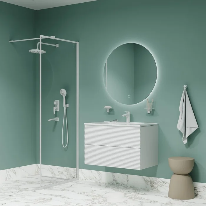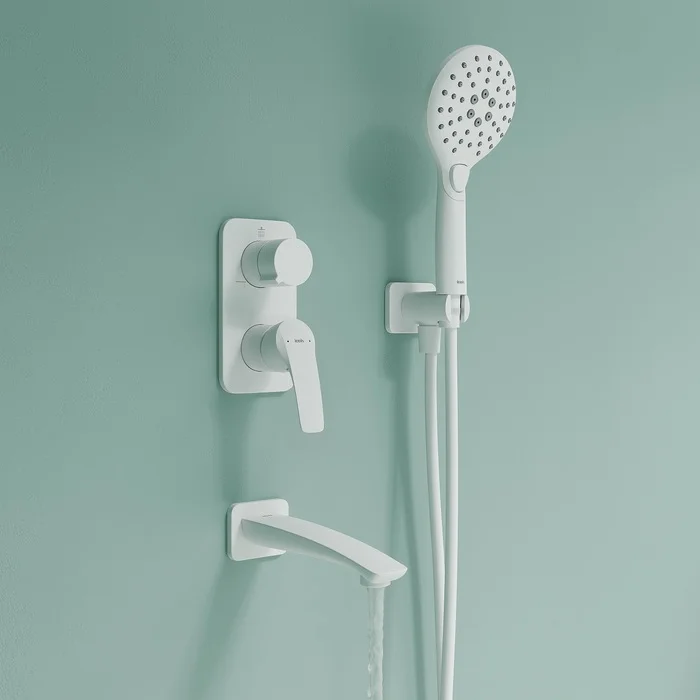 Готовый набор встраиваемой сантехники в матовом белом цвете включает все необходимое для обустройства комфортной и красивой душевой или ванны. Так выгоднее и удобнее, чем покупать все по отдельности.