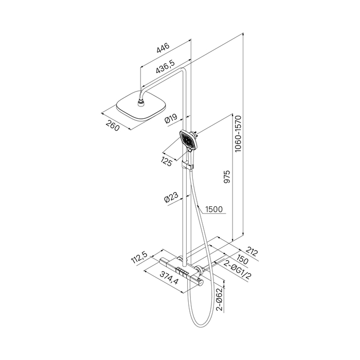 • В комплекте: верхняя лейка 260х260х65 мм, ручная лейка с 3 режимами 270х125 мм, гладкий душевой шланг 1,5 м.