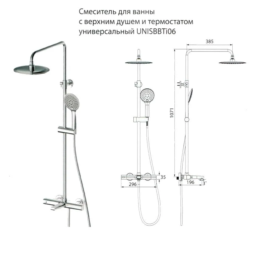 - Дополнительные функции: излив для наполнения ванны, ручной душ