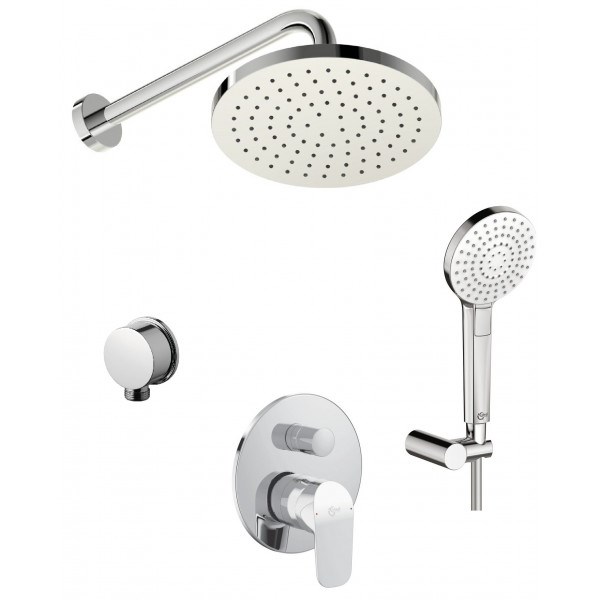 CERAFLEX Промо комплект 4 в 1, состоящий из: A6758AA CERAFLEX Встраиваемый Однорукоятковый смеситель для ванны и душа, полный комплект; B2239AA IDEALRAIN EVO ROUND L3 Душевой комплект с настенным держателем (3-функциональная легкоочищаемая лейка O110 мм, шланг 1750 мм IDEALFLEX®, пластиковый держатель лейки); B9448AA Подключение для душевого шланга; BA193AA SEVAJET M1 1-функциональный верхний душ O200 мм с рукояткой 300 мм