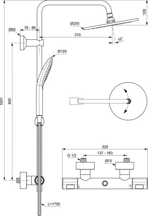 Душевая система Ideal Standard CERATHERM T100 A7241AA термостат