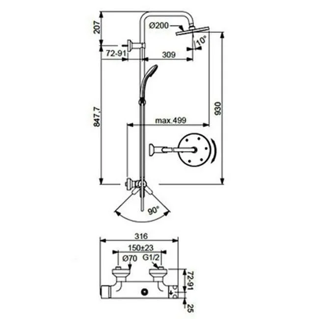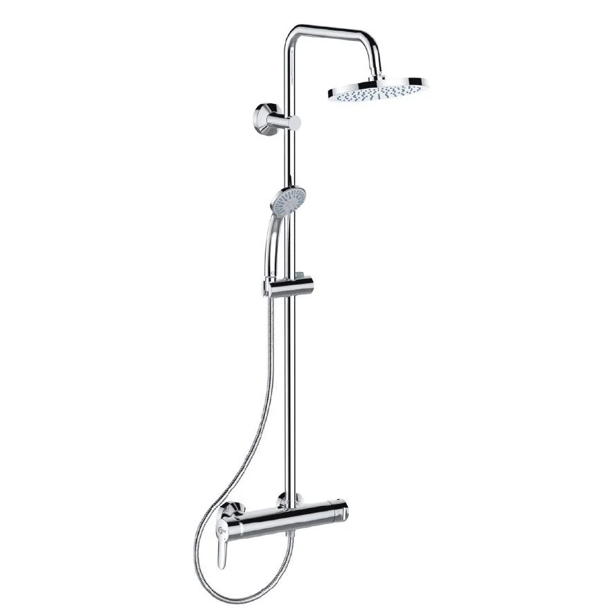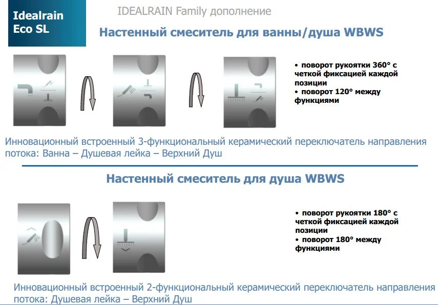 IDEALRAIN ECO SL Душевая система в комплекте с настенным смесителем для душа CONNECT (с функциями CLICK и HWTC (ограничение горячей воды)), металлическая рукоятка, 2-функциональный керамический переключатель, поворот рукоятки 180° с четкой фиксацией каждой позиции, скрытый монтаж, эксцентрики с шумопонижателями, душевая труба O25 мм для верхнего душа, пластиковый слайдер с кнопкой, металлические крепления к стене, регулируемое верхнее крепление, пластиковый верхний душ 200 мм, ограничение потока 12 л/мин, шаровое соединение, 3-функциональная душевая лейка 80мм (ограничение потока 8 л/мин.), металлический шланг 1500 мм, обратный клапан