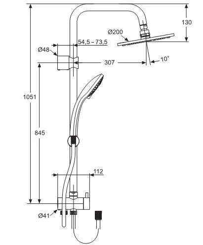 IDEALRAIN SOFT Душевая система для установки с настенным смесителем. 3-функциональная душевая лейка O100 мм (B9403AA), ограничение потока 8 л/мин., пластик; верхний душ O200 мм (латунь), ограничение потока 12 л/мин.; душевая труба O25 мм для верхнего душа (латунь), ручное переключение, пластиковый слайдер, металлические крепления к стене, шланг для душа IdealFlex 1750 мм (пластик). Смеситель заказывается дополнительно.