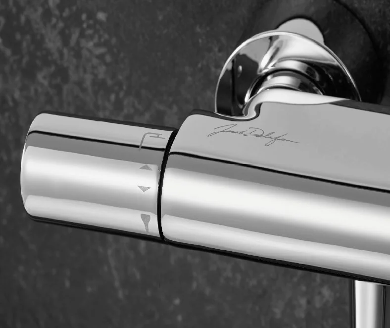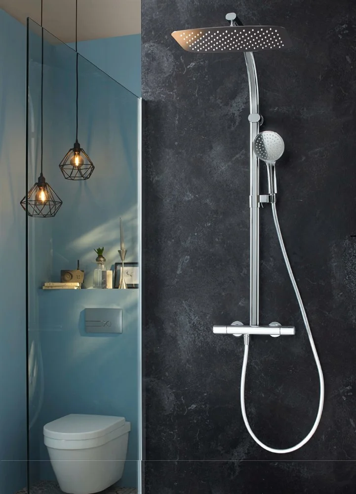 Душевая колонна с термостатическим смесителем, верхним и ручным душем.