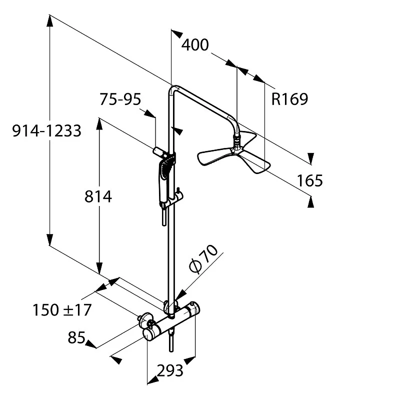 Душевая система с термостатом и ручной лейкой с одним типом струи, цвет хром.