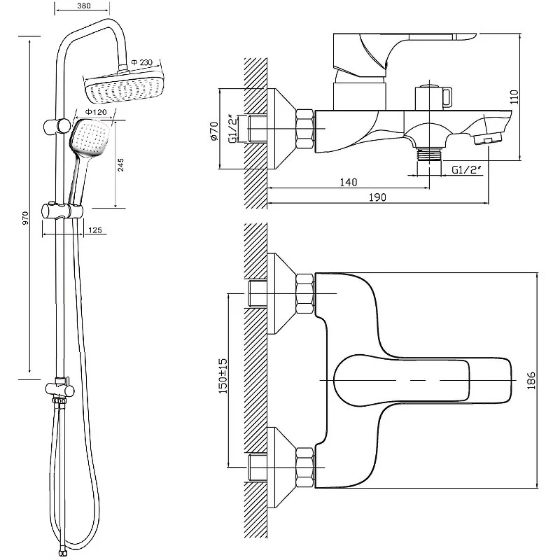 Душевая система Orange Aristo в комплекте: однозахватный смеситель для ванны с изливом (190 мм) и керамическим картриджем, верхний душ 230х230 мм и ручной душ 120 мм (1 режим) с защитой от известкового налета, регулируемый по наклону держатель верхнего и ручного душа, душевой шланг 1,5 м (в металлической оплетке, с защитой от перекручивания), керамический дивертор. Штанга 970 мм с возможностью установки в старые отверстия. Цвет матовый черный, за которым просто ухаживать мягкой салфеткой, получен порошковой окраской с многоступенчатой системой подготовки и высокотемпературной обработкой.