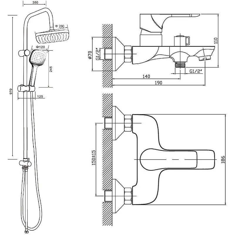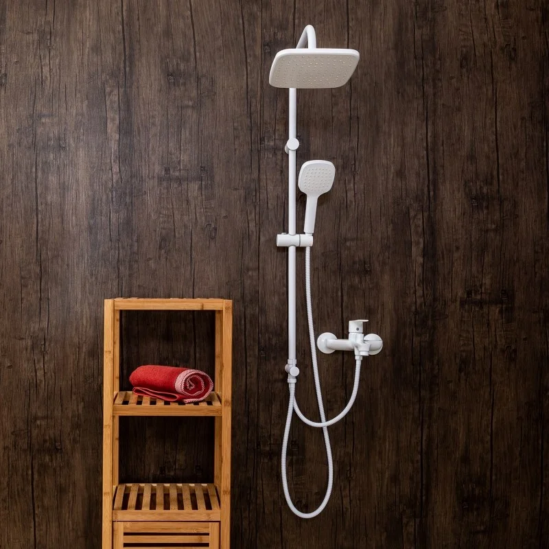 Душевая система Orange Aristo в комплекте: однозахватный смеситель для ванны с изливом (190 мм) и керамическим картриджем, верхний душ 230х230 мм и ручной душ 120 мм (1 режим) с защитой от известкового налета, регулируемый по наклону держатель верхнего и ручного душа, душевой шланг 1,5 м (в металлической оплетке, с защитой от перекручивания), керамический дивертор. Штанга 970 мм с возможностью установки в старые отверстия. Цвет глянцевый белый.