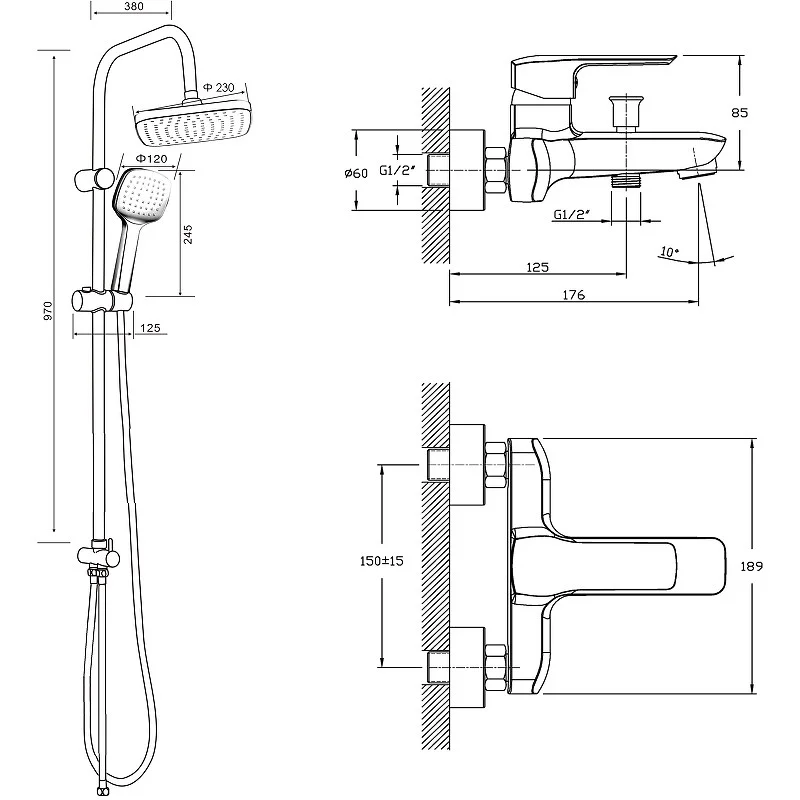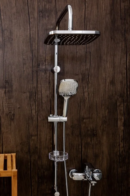 Душевая система Orange Merci в комплекте: однозахватный смеситель для ванны с изливом (176 мм) и керамическим картриджем, верхний душ 230х230 мм и ручной душ 120 мм (1 режим) с защитой от известкового налета, регулируемый по наклону держатель верхнего и ручного душа, душевой шланг 1,5 м (в металлической оплетке, с защитой от перекручивания), керамический дивертор. Штанга 970 мм с возможностью установки в старые отверстия. Цвет глянцевый хром.