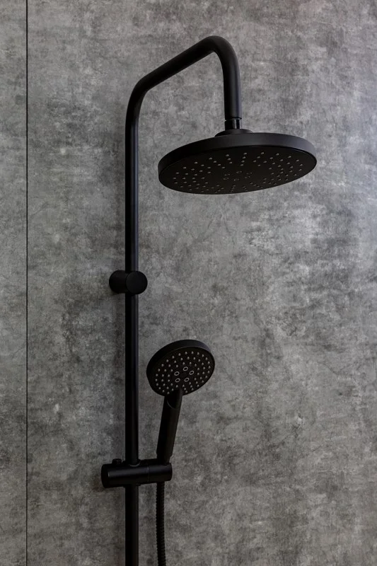 Душевая система Orange O-Shower в цвете черный матовый: верхний душ (d200 мм - 2 режима) создаёт эффект тропического дождя, что дарит непередаваемые эмоции во время ежедневных банных процедур. Ручной душ 100 мм (3 режима) на гибком полутораметровом шланге (в металлической оплетке) с защитой от перекручивания. Держатели верхнего и ручного душа с регулировкой угла наклона, штанга 970 мм с подвижным держателем (возможность установки в старые отверстия). Подвижные детали отличаются долговечностью. Форсунки верхнего и ручного душа с функцией легкого очищения от известкового налета.