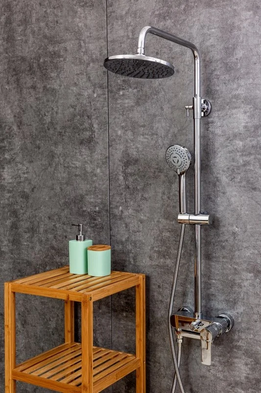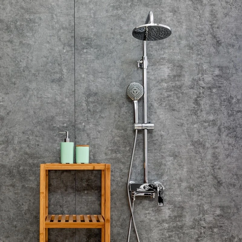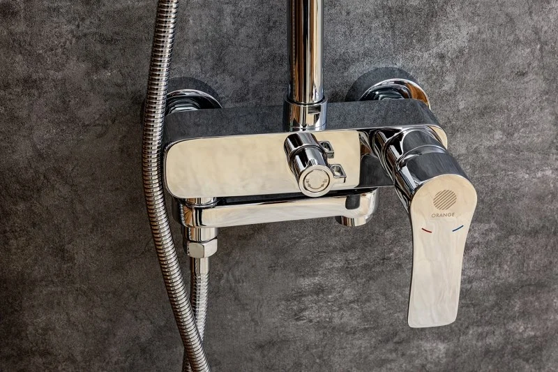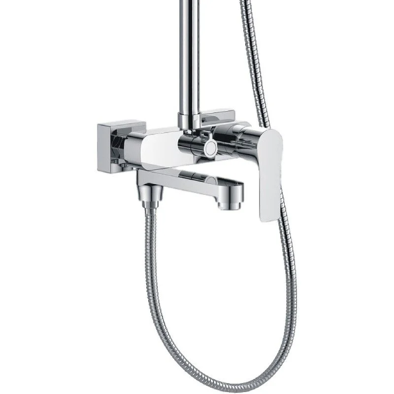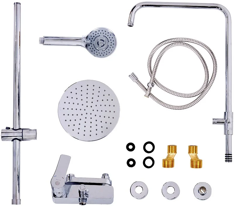 Душевая система Orange Otto: смеситель с изливом (175 мм), телескопическая штанга (880-1200 мм), верхний душ (200 мм) с регулируемым углом наклона и силиконовыми наконечниками для простого удаления известкового налёта, трёхрежимный ручной душ (d90 мм), регулируемый по высоте и углу наклона держатель ручного душа, растягивающийся душевой шланг 1500-1800 мм в металлической оплетке (с защитой от перекручивания). Цвет глянцевый хром.