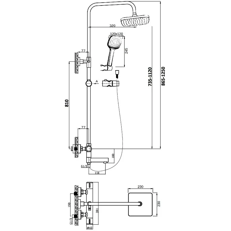 Душевая система Orange Thermo: термостат с поворотным изливом 118 мм (управление осуществляется с помощью двух стильных ручек: левая - регулирует напор воды, правая - управляет температурой, создавая идеальные условия для принятия водных процедур), телескопическая штанга 865-1250 мм, верхний душ (230х230 мм) с регулировкой угла наклона и силиконовыми форсунками (защита от известкового налета), ручной душ d 120 мм (1 режим), регулируемый по высоте и углу наклона держатель ручного душа, шланг 1500 мм в металлической оплетке (с защитой от перекручивая). Цвет матовый черный, за которым просто ухаживать мягкой салфеткой, получен порошковой окраской с многоступенчатой системой подготовки и высокотемпературной обработкой.