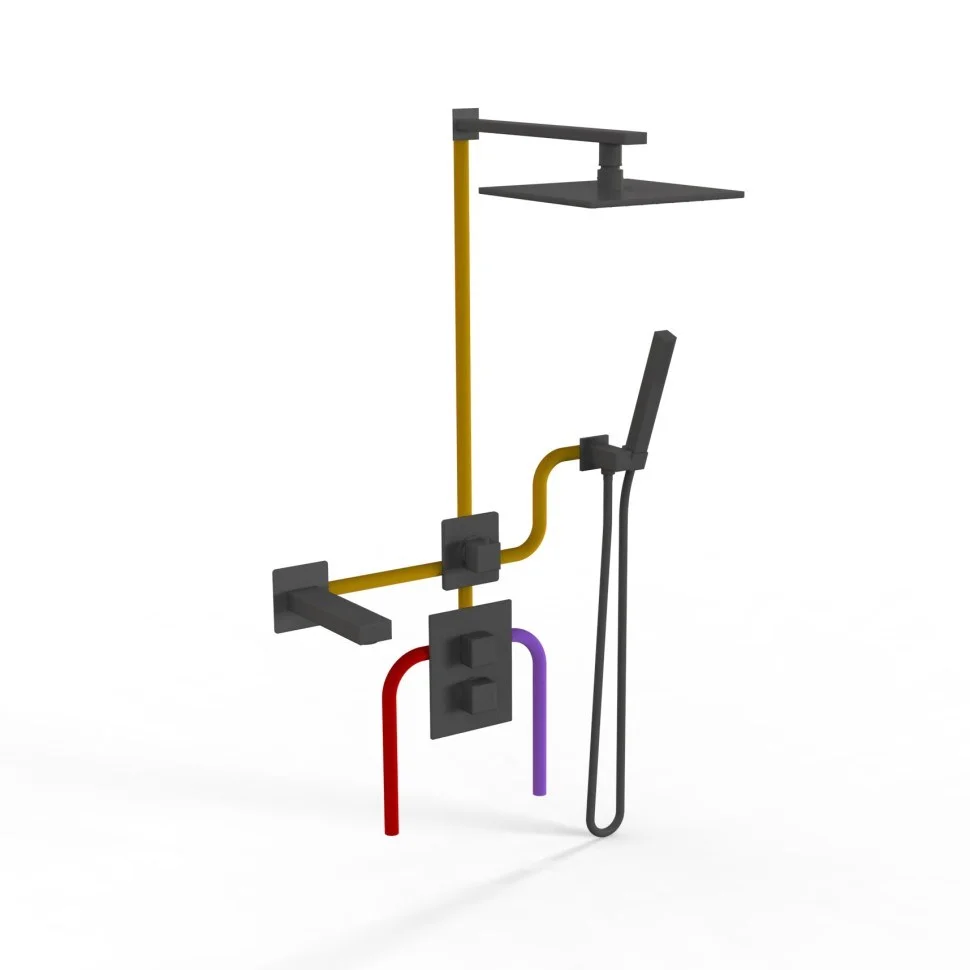 Душевая система Paini Grazia 21PZSET36911THSHBATH с термостатом, черный матовый