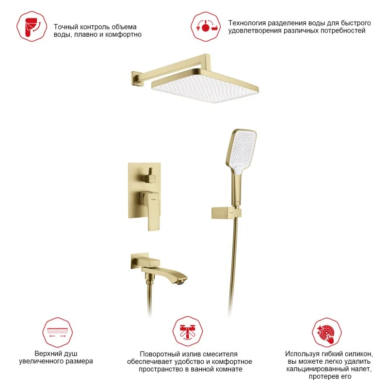 Душевая система Raglo R01.27.03 встраиваемая, золотой сатин