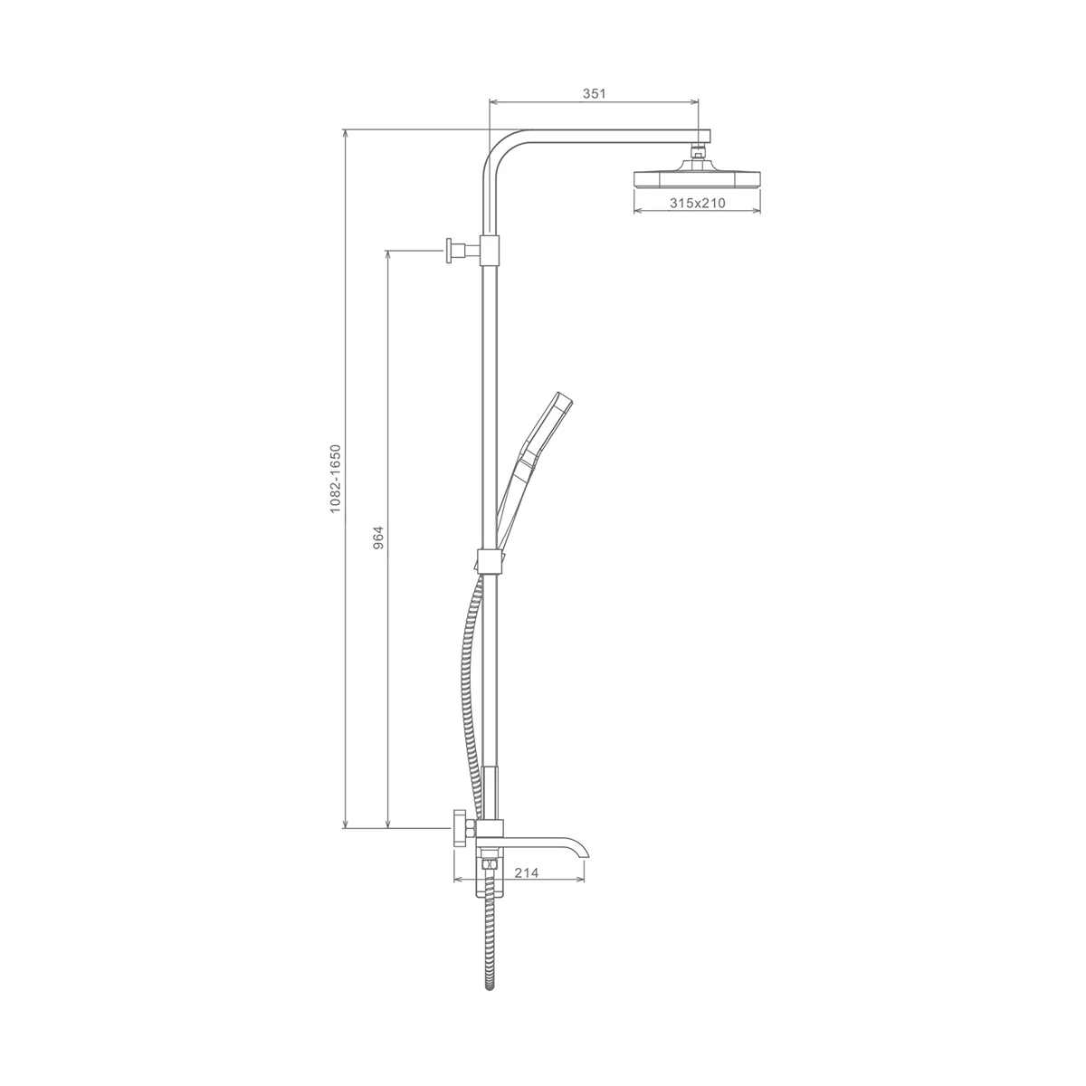 • Форма верхнего душа (ШхД): прямоугольная 315х210 мм