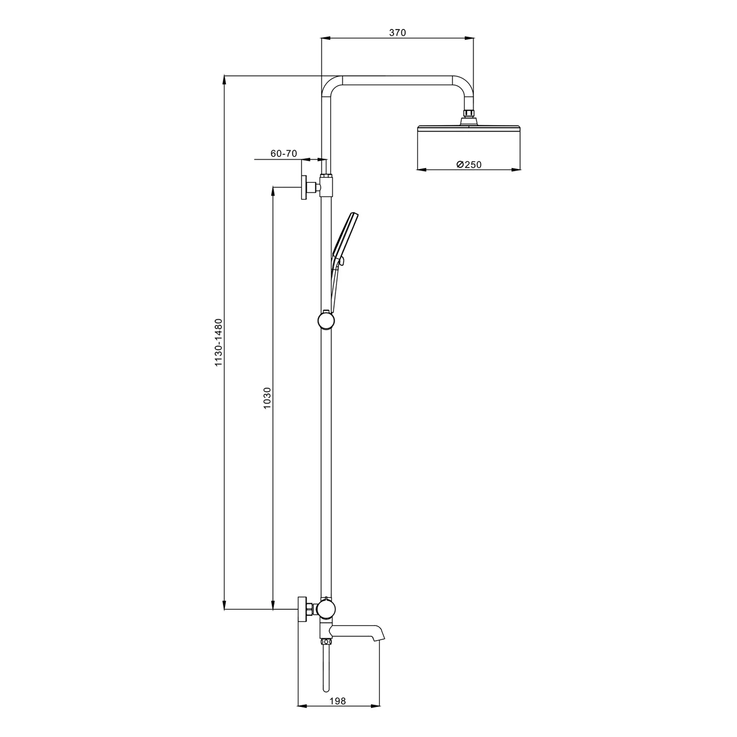 Длина душевого шланга, мм
