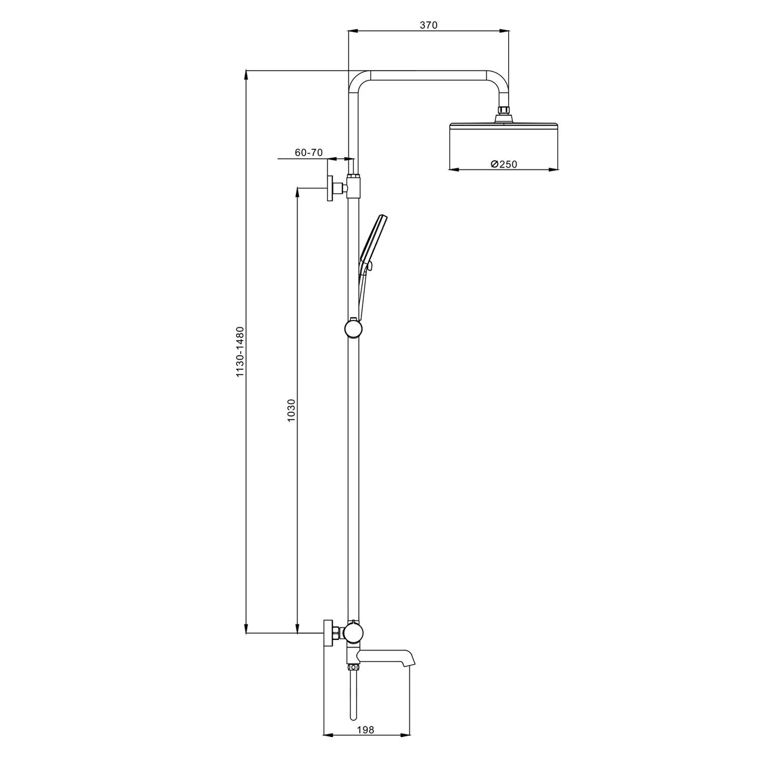 Длина душевого шланга, мм