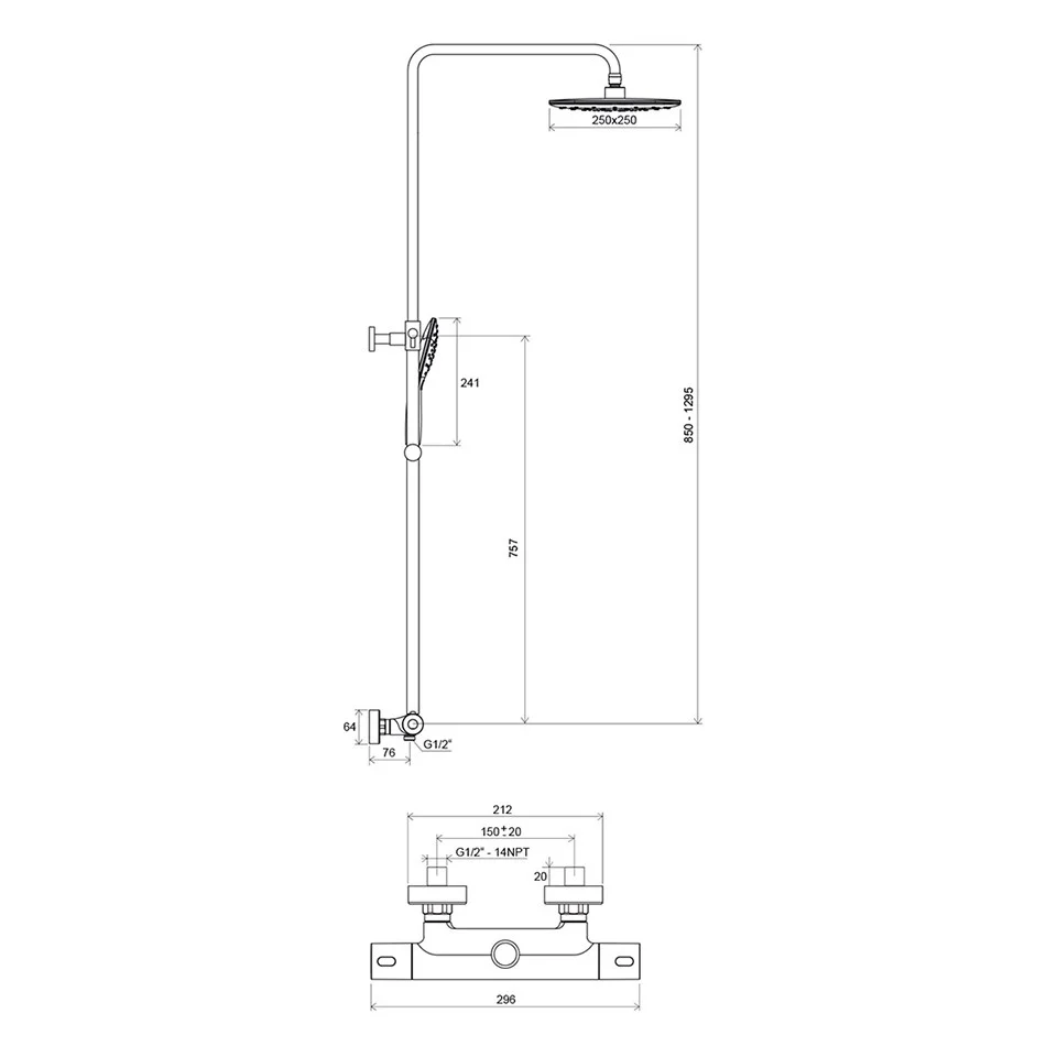 Душевая система Ravak Termo 300 TE 093.00/150 X070099