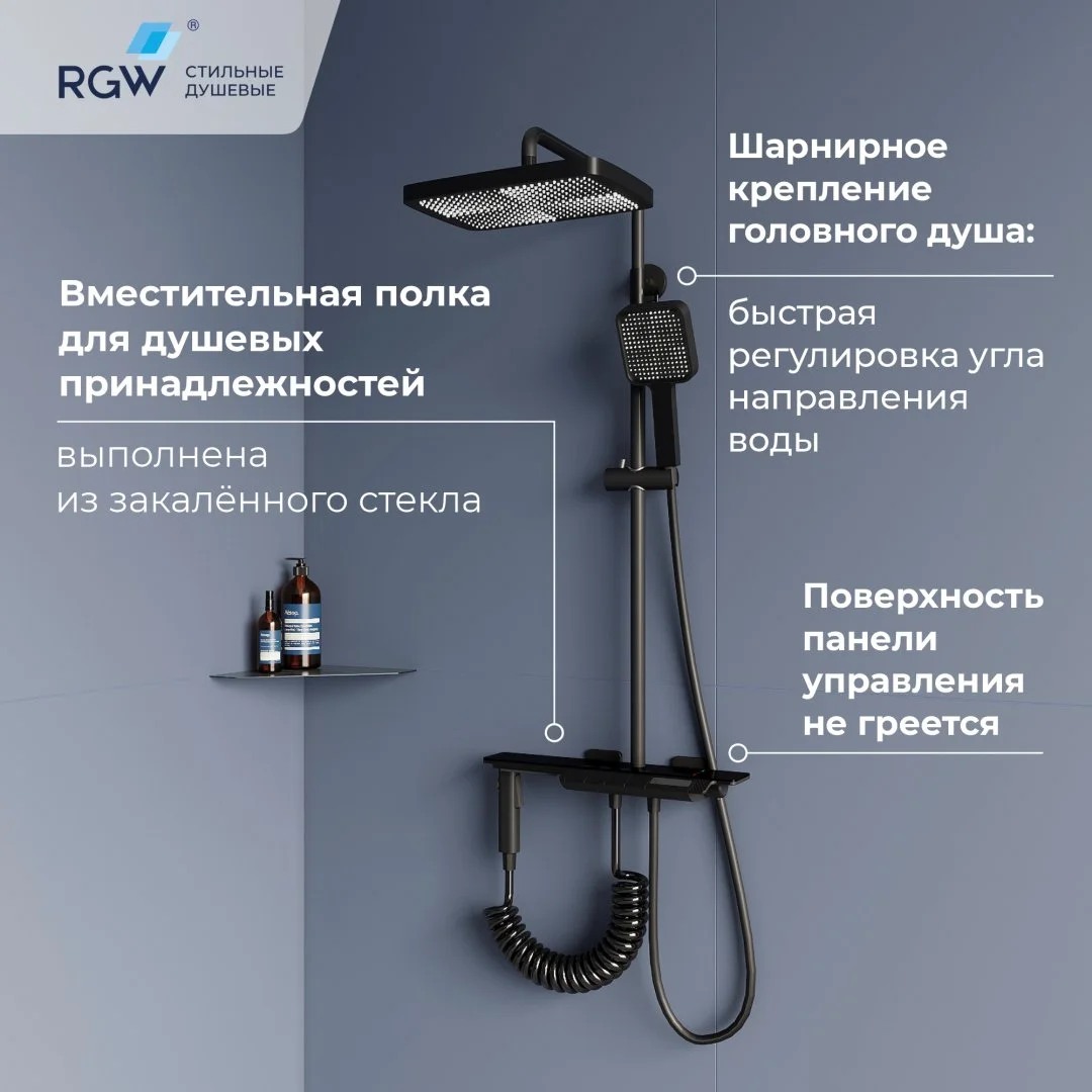 Головной душ из высокопрочного ABS-пластика оснащён со шарнирным креплением, что позволяет выбрать необходимый угол направления воды;