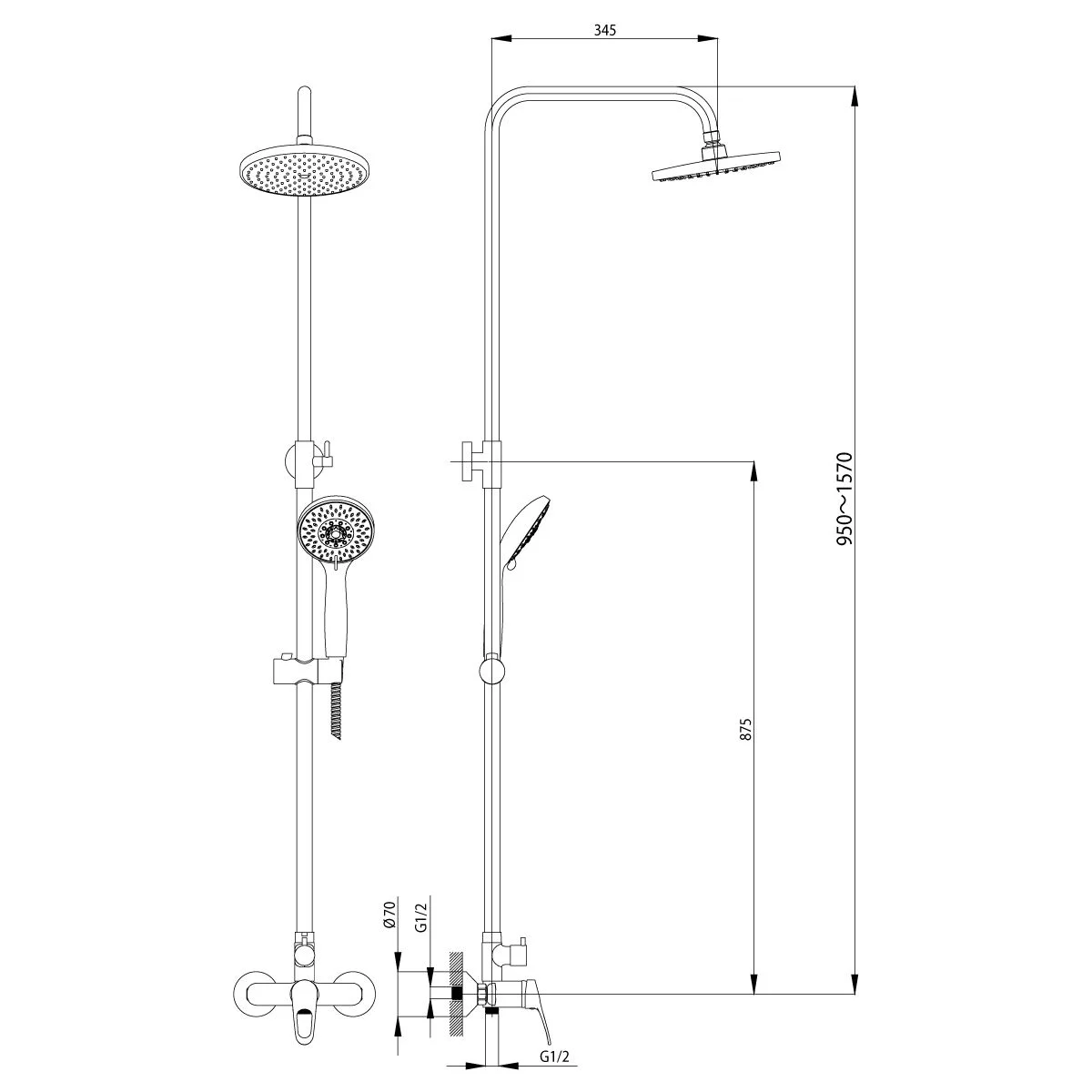 - Верхняя поворотная душевая лейка «Тропический дождь» Ø200 мм с функцией легкой очистки