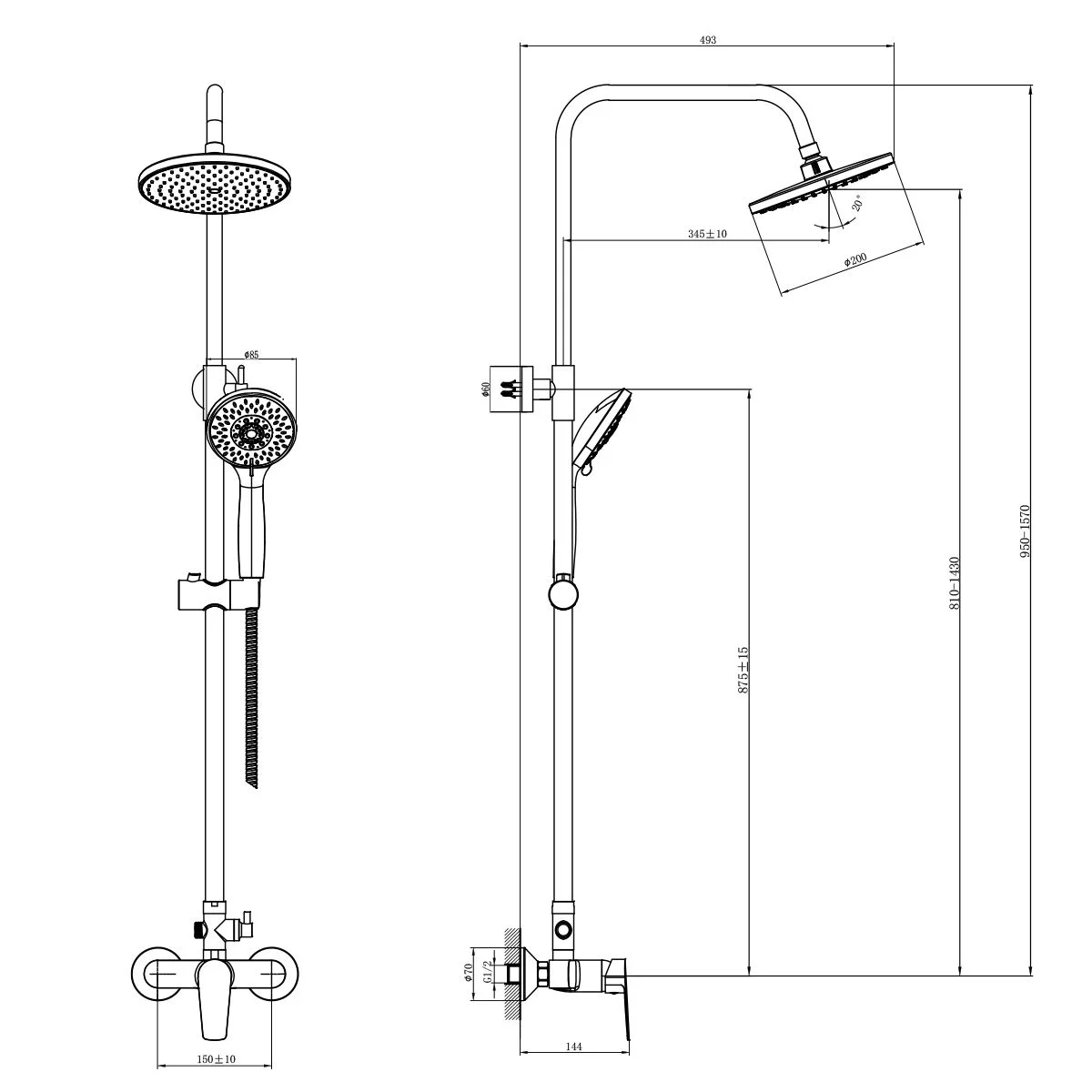 - Верхняя поворотная душевая лейка «Тропический дождь» Ø200 мм с функцией легкой очистки