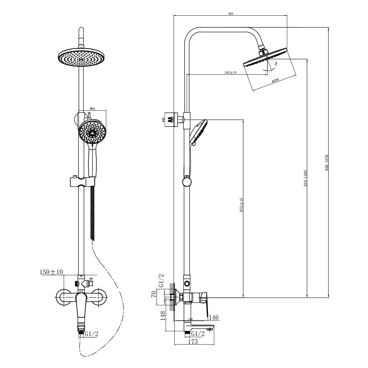 - Переключатель верхний/ручной душ с керамическими пластинами
